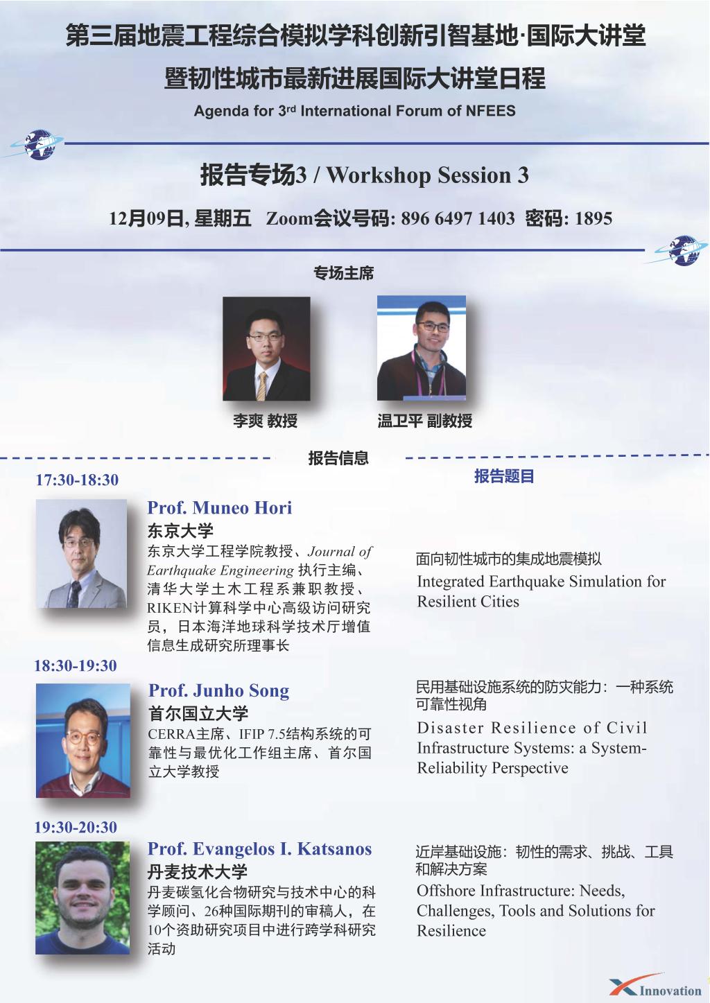 “地震工程综合模拟学科创新引智基地·国际大讲堂”是地震工程综合模拟学科创新引智基地建立的用于国际学术交流的平台,每年年中和年末各举办一次,旨在邀请国际知名专家围绕相关领域研究的热点问题进行学术交流。在灾害不断扰动的今天,城市防灾日益为人们所重视,人类对待灾害的观念转为接受灾害的存在的同时对灾害有所预防,加强城市抵制灾害的能力和快速从灾害中恢复的能力以减少灾害带来的损失,韧性城市本身就代表了城市防灾研究的新阶程。基于此,第三届国际大讲堂再次以韧性城市的最新进展为主题,邀请国际知名专家进行学术交流,为未来韧性城市的建设出谋划策。