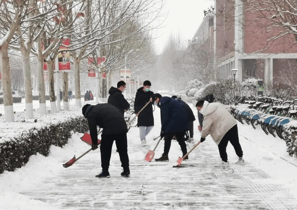 面对除雪任务,这支在疫情防控中冲锋在前的学生队伍,在扫雪除冰中也不含糊,十分钟内20多人集结完毕迅速行动,经过1个半小时,扫清43教学楼周围积雪,清理通往学生宿舍、食堂的人行通道,保证师生出行安全。