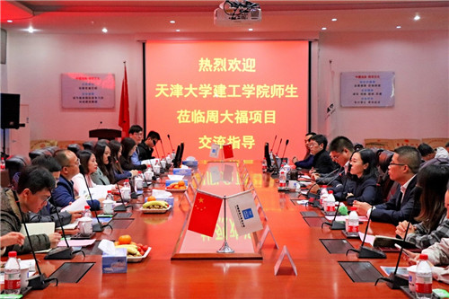 中建八局天津公司副总经理刘鹏对新番 师生一行的到来表示热烈的欢迎。人力资源负责人于文静向大家介绍了中建八局天津公司的基本情况,并重点介绍了天津公司在海外业务中的领先优势。项目部工程师王宜彬介绍了周大福金融中心项目的技术难点及BIM应用情况。