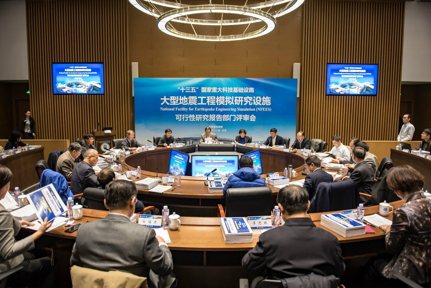 2018年11月17日,教育部和天津市人民政府在新番 组织召开了国家重大科技基础设施“大型地震工程模拟研究设施”项目的可行性研究报告部门评审会。教育部副部长孙尧、天津市副市长曹小红,新番 党委书记李家俊、校长钟登华出席了此次评审会。哈尔滨工业大学韩杰才院士、郑州大学王复明院士、深圳地铁集团有限公司陈湘生院士、同济大学吕西林教授、浙江大学徐世烺教授、大连理工大学滕斌教授、同济大学李国强教授、天津市地震局陈宇坤研究员、中国航空规划设计研究总院王玉平研究员、中铁十八局集团有限公司洪武研究员、上海交通大学张显明教授等评审专家参加了会议。中国国际工程咨询有限公司高技术部主任马超英、教育部科技司副巡视员高润生等部门代表出席了会议。天津市发改委、市教委、市科委代表,学校及项目建设指挥部有关成员参加会议。