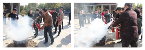 讲座结束后,所有参会师生到43楼南门广场开始进行灭火器的操作演练。在保卫处老师的操作演示下,所有师生都认真的完成了灭火器的使用演练。