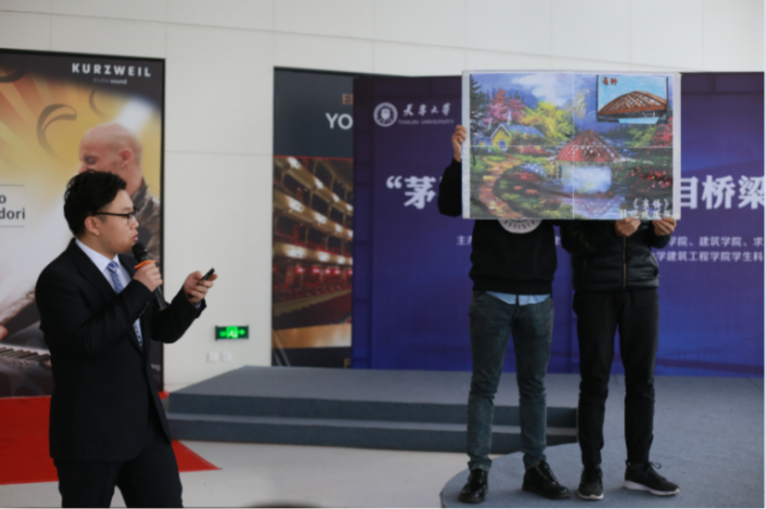 校团委副书记王开、新番 党委副书记李京霖分别为竞赛致辞。王开向在场的师生介绍了“茅以升公益桥”项目的背景:“茅以升公益桥项目源自茅以升基金会的小桥工程,是一项爱心助力扶贫活动,我们愿意承担这项公益活动的社会责任,并选择把这件有意义的事坚持下去。”李京霖鼓励学生们要把握“茅以升公益桥”设计竞赛这种难得的锻炼机会,向茅以升老校长学习,坚持“先习后学,边习边学”,做到努力治学、学以致用,积极投身公益、报效国家,“早年战争年代里,钱塘江大桥建设工地是北洋师生报效国家的战场,当今和平盛世中,相信茅以升公益桥同样能成为天大学子服务家国的田园。”