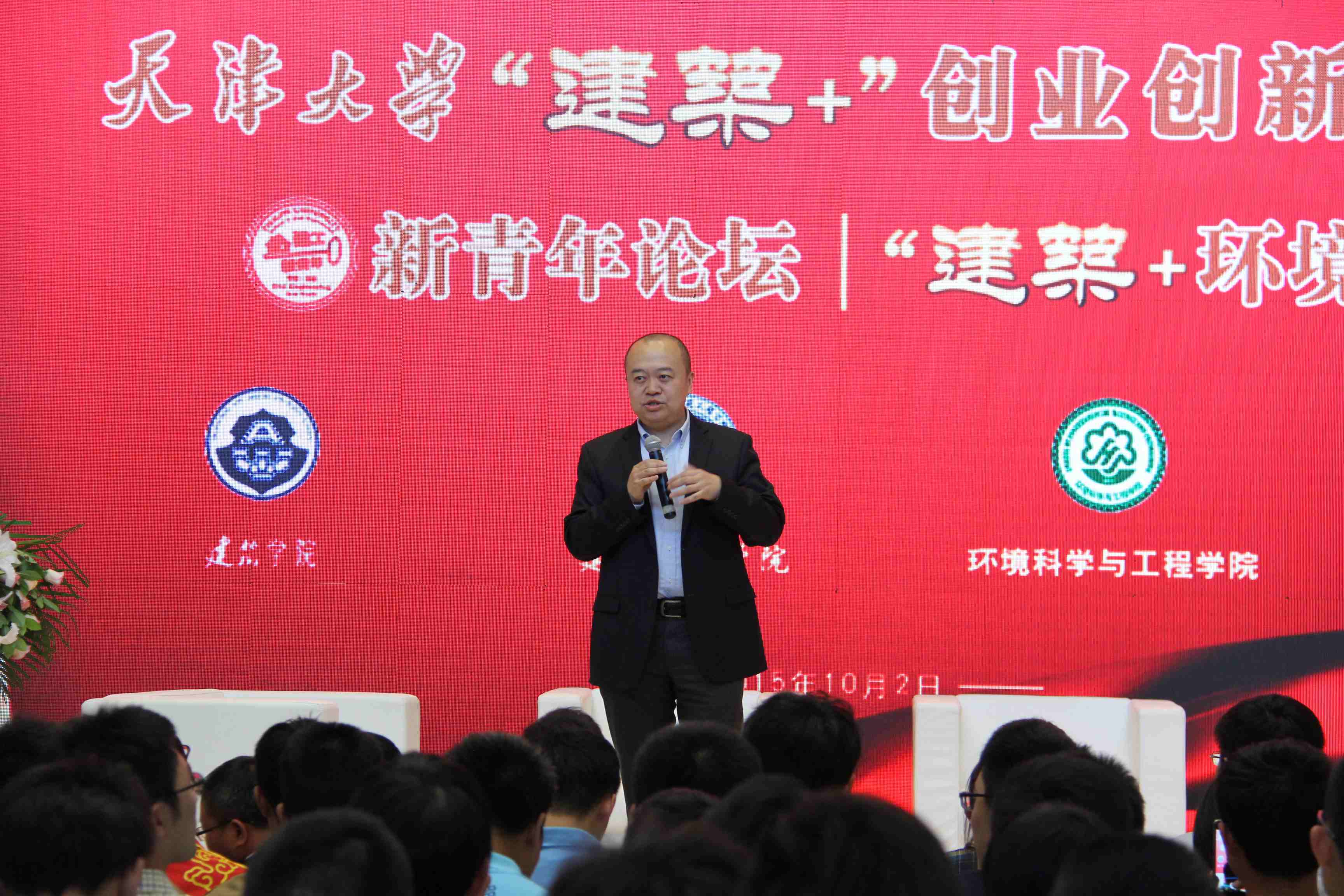 启动仪式后,赵晓钧、李兴刚、陈谊等行业专家、企业高管以及郑刚、陈冠益等天大学者参加了新青年论坛之“建筑+环境”双创论坛。与现场的学生亲切交流,回忆他们在母校学习生活的场景,也分享了在学习、工作方面的经验。赵晓钧在论坛中说:“希望学生们继承‘求实’精神,解放梦想,勇于探索,不断创造新的奇迹。”