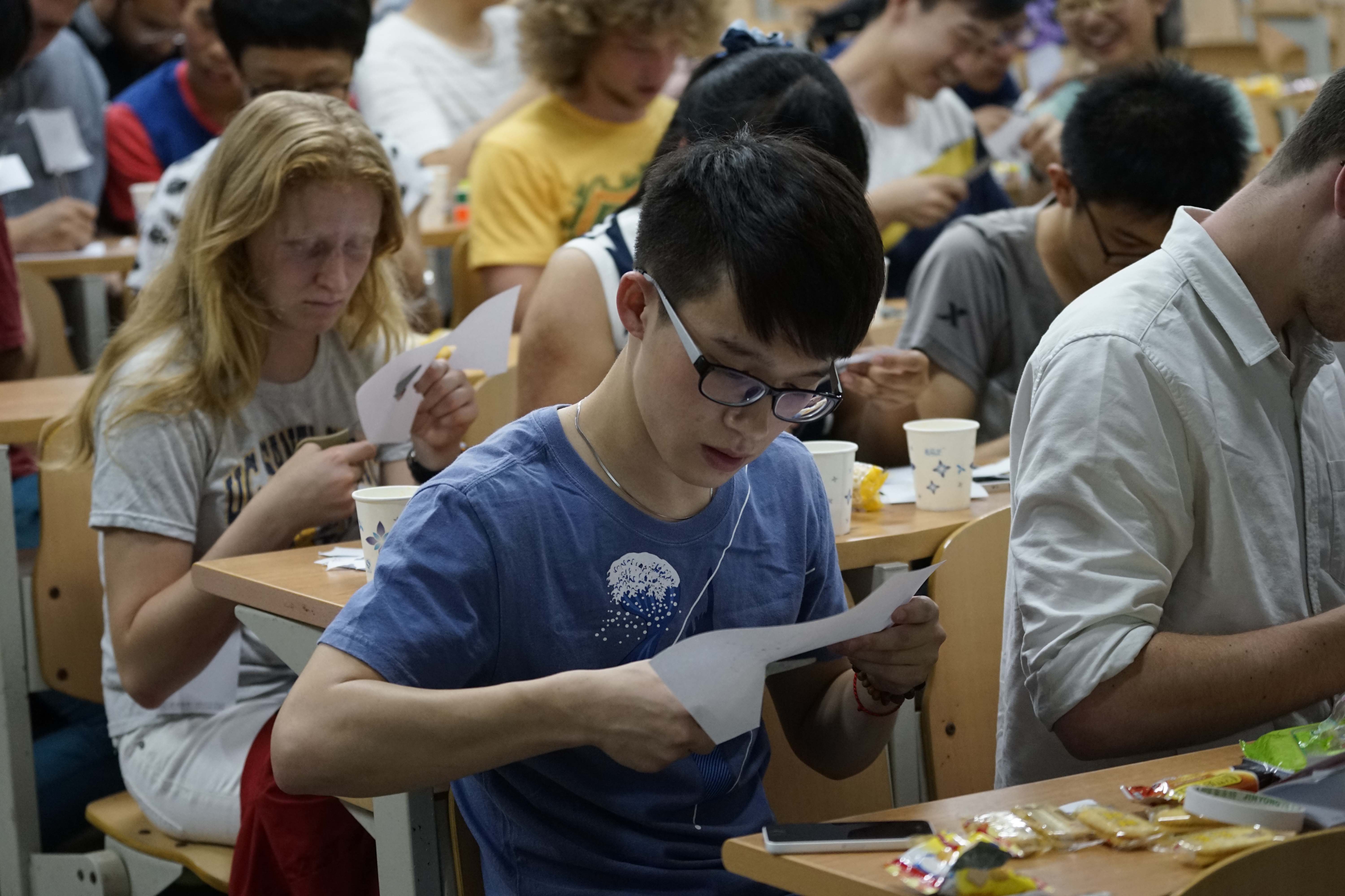 接下来进行了纸模手工的比赛,两校学生在实践方面都表现出了极强的动手能力。紧接着的画脸谱环节,不仅让我们看到了与会同学的创新能力,还让我们深切体会到了中华文化的独特魅力。接下来是别开生面的自由展示环节,李梓叶同学为大家献上了一首rolling in the deep,精彩的演唱将交流会的气氛推上高潮,帅气的美国小伙也为大家献上一首歌曲,大家和着节奏一同唱了起来。在这样的氛围里,两校学生热情地用英文互相沟通,彼此交流了自己的想法,热情的建工学生不仅彰显了新番 学生的综合能力素质,还让来访美国学生感受到了中国学生的热情。
