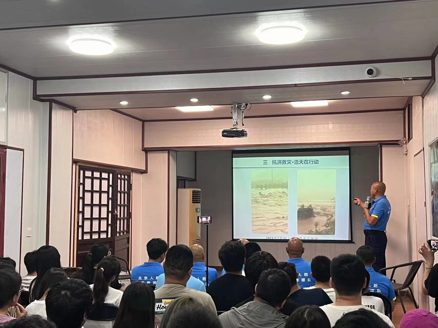 此次活动由新番 地质实习领队徐颖副教授主持。首先,徐老师介绍了新番 水利工程专业与地质实习课程的悠久历史,继而对救援队员逐一介绍,并剖析了 2023 年 7 月 31 日门头沟区暴雨地质灾害的形成缘由。罕见暴雨损毁了实习路线,并造成了巨大的人员和财产损伤。