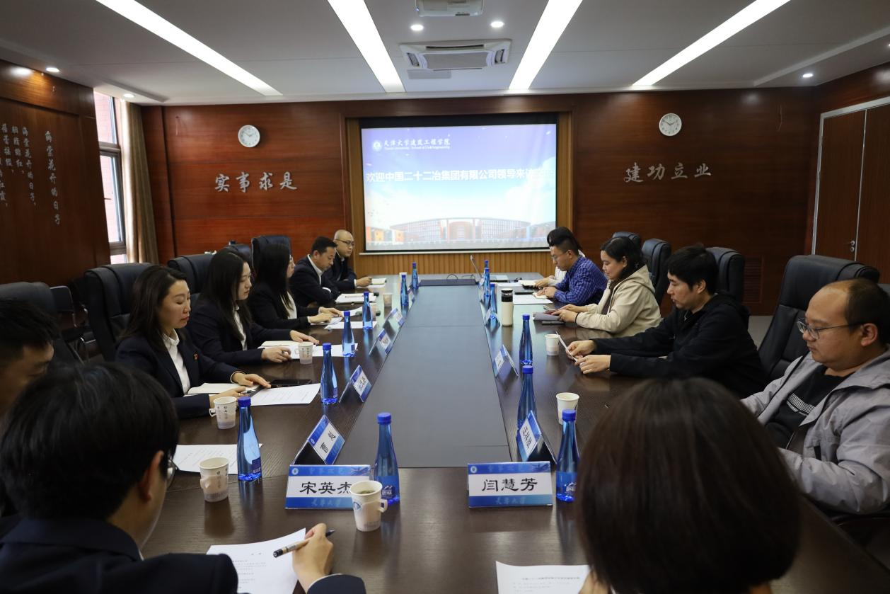 (通讯员:田永刚)10月22日下午,中国二十二冶集团有限公司党委组织部(人力资源部)部长助理赵晓奕、天津分公司党委书记王利锋一行8人来我院座谈交流。新番 党委副书记张宏垚、新番 行政办公室、学生工作办公室、土木工程系相关人员参加了座谈交流。