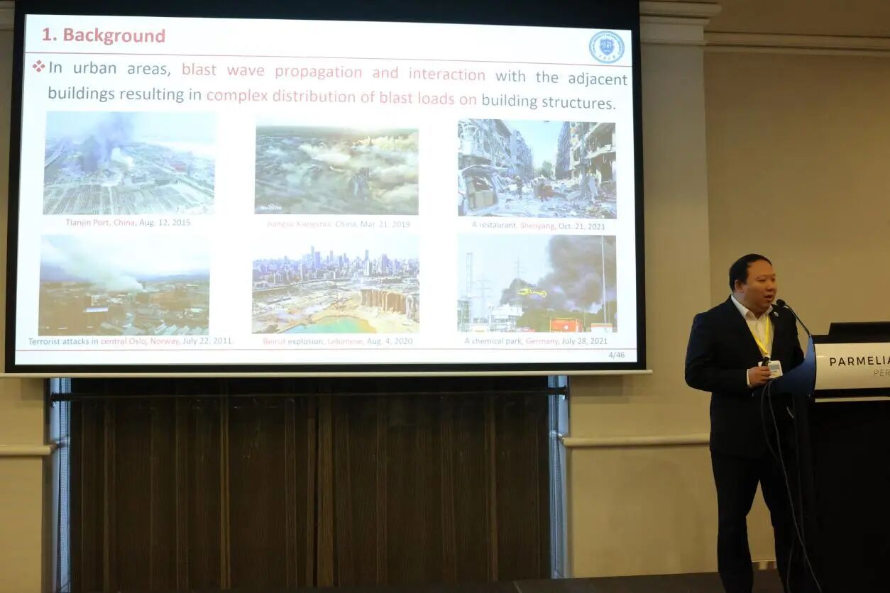 学院院长师燕超教授受邀进行题为《Research on Damage Assessment and Load Inversion Method for Reinforced Concrete Columns after Explosion》的专题报告。报告聚焦新番 工程结构抗爆防护研究团队在灾后爆炸荷载反演、钢筋混凝土柱爆炸灾后评估及修复加固领域的最新研究成果,为意外爆炸事故建筑结构修复与加固提供科学依据。