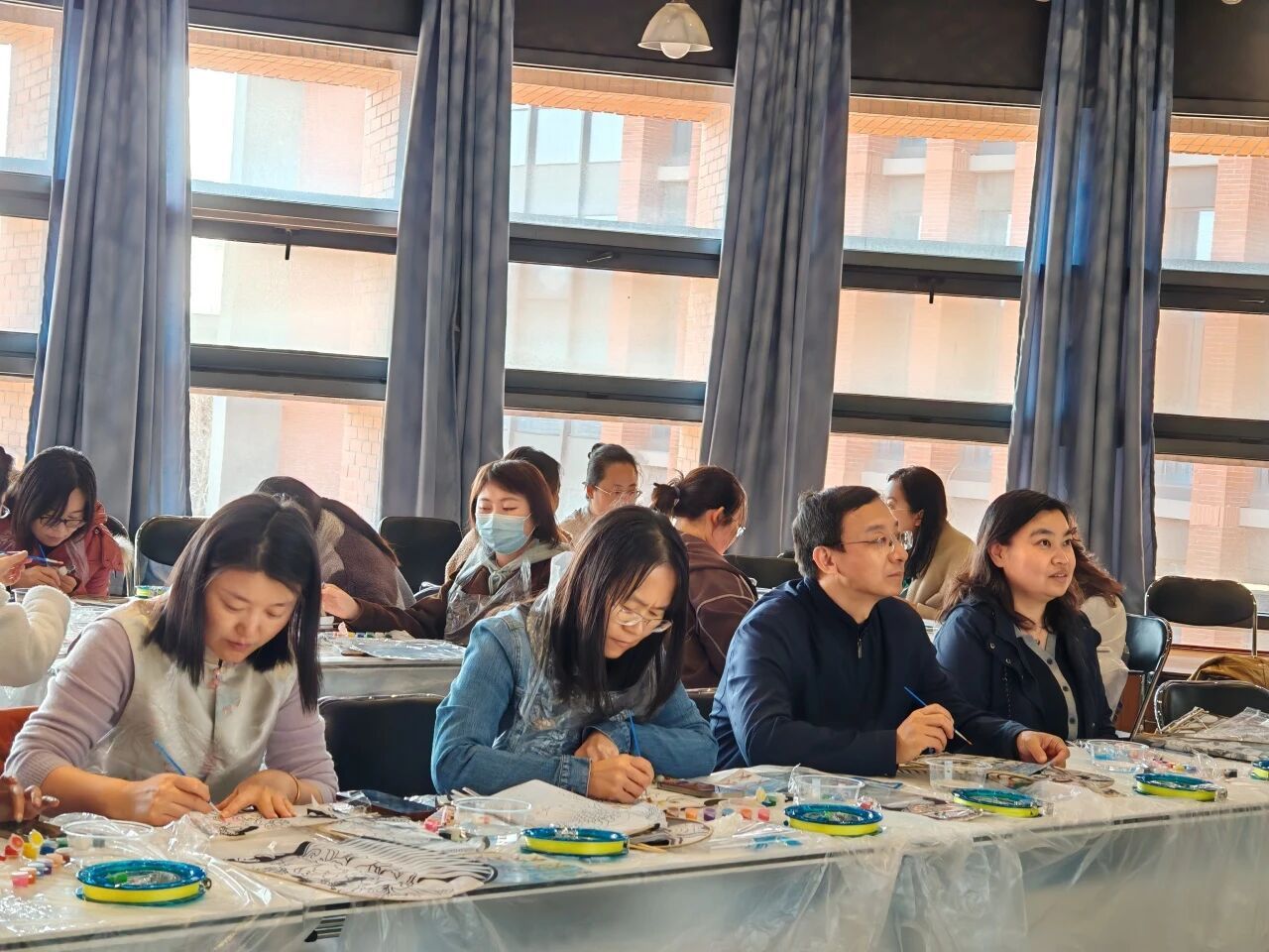 活动现场氛围轻松温馨,笑语盈盈。老师们依托沙燕固有的灵动轮廓,在保留传统纸鸢形制的基础上挥洒创意,将春日花草纹样点缀其间,以笔墨勾勒雅致意境,一笔一画都贴合传统纸鸢的美学底蕴,也让非遗文化在指尖鲜活起来。大家边创作边交流,互相分享配色思路,在轻松融洽的氛围里褪去日常工作的忙碌,近距离感受传统手工艺的独特魅力。这批纸鸢均为传统非遗手作,兼具观赏与实用价值,完工后可乘风放飞,让这份春日雅趣与非遗韵味一同舒展。