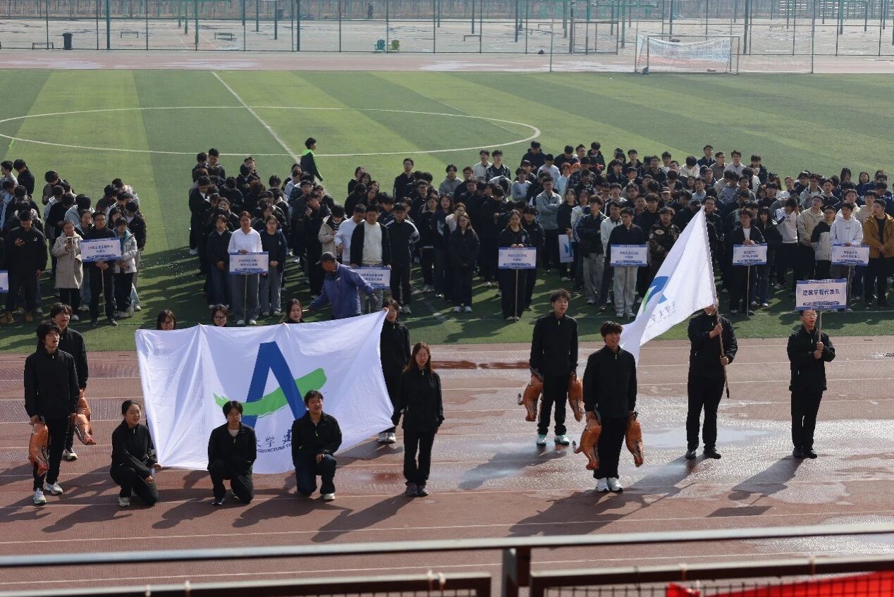 李振宇致开幕辞,张宇宣布开幕,李凯鑫和曾琢玉分别代表裁判员和运动员庄严宣誓。运动会在体育部和主办学院师生的健康慢跑中正式启幕。
